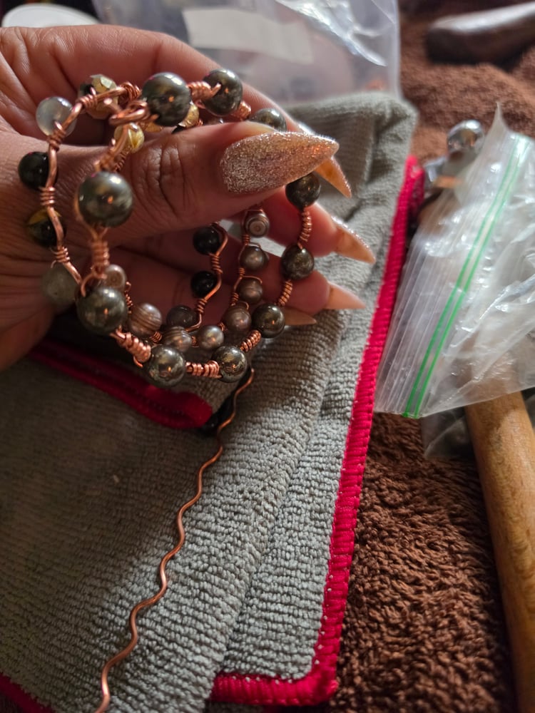 Please be sure to state in the purchase comments rather you'd like size dainty, regular, or large In Crystals: silver obsidian, pearl multi, iron pyrite, faceted Crystal, or quartz. This is a flat rate pre-order option the official drop is May 1st. Shipping for this product begins on the 4th. The official selection will be priced individually. Pre-order to catch the into price.